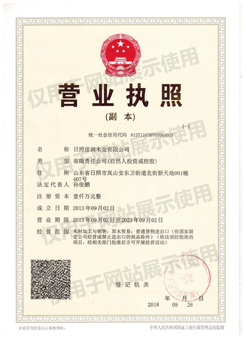 佳潤(rùn)木業(yè)有限公司始建于2002年,目前集木方加工、木方銷(xiāo)售于一體,擁有山東日照加工基地,占地400余畝。擁有木方加工、托盤(pán)料加工、小料生產(chǎn)等專(zhuān)業(yè)切割生產(chǎn)線(xiàn)100余條,日切割加工成品2000余立方米,可裝載40余掛車(chē)。目前是國(guó)內(nèi)實(shí)力雄厚、生產(chǎn)規(guī)范的加工商,原始注冊(cè)資本1000萬(wàn)人民幣。
