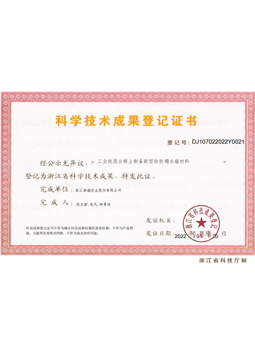Registration Certificate of Scientific and Technological Achievements
